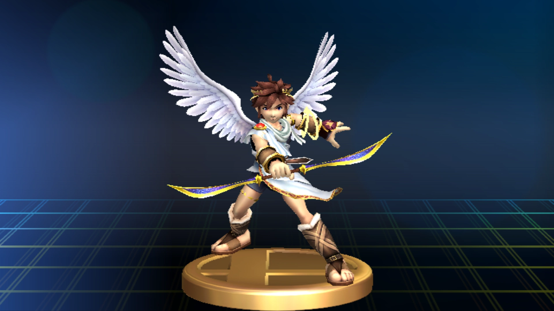 - Y su Smash Final, el Ejército de Palutena formado por Palutena (que también aparece en el Modo historia y en el Reino del Cielo como una estatua) y los Icarios, aquí llamados Centuriones alados.