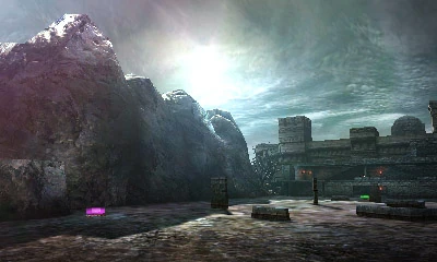 Ancient Fortress is a multiplayer stage in Kid Icarus: Uprising. It appears to be ruins of a fortress built on a mountain top, several pillars and large bits of rubble are situated in the center of the map and castle like ruins can be found towards the back of the map. Players can go inside the ruins to avoid enemy fire or find a suitable sniping position, but the area is fairly open. So in most cases, players are just as vulnerable in the ruins as they are on the field. A green jump pad is located in front of the fortress, and two pink jump pads can be found near the edges of map.