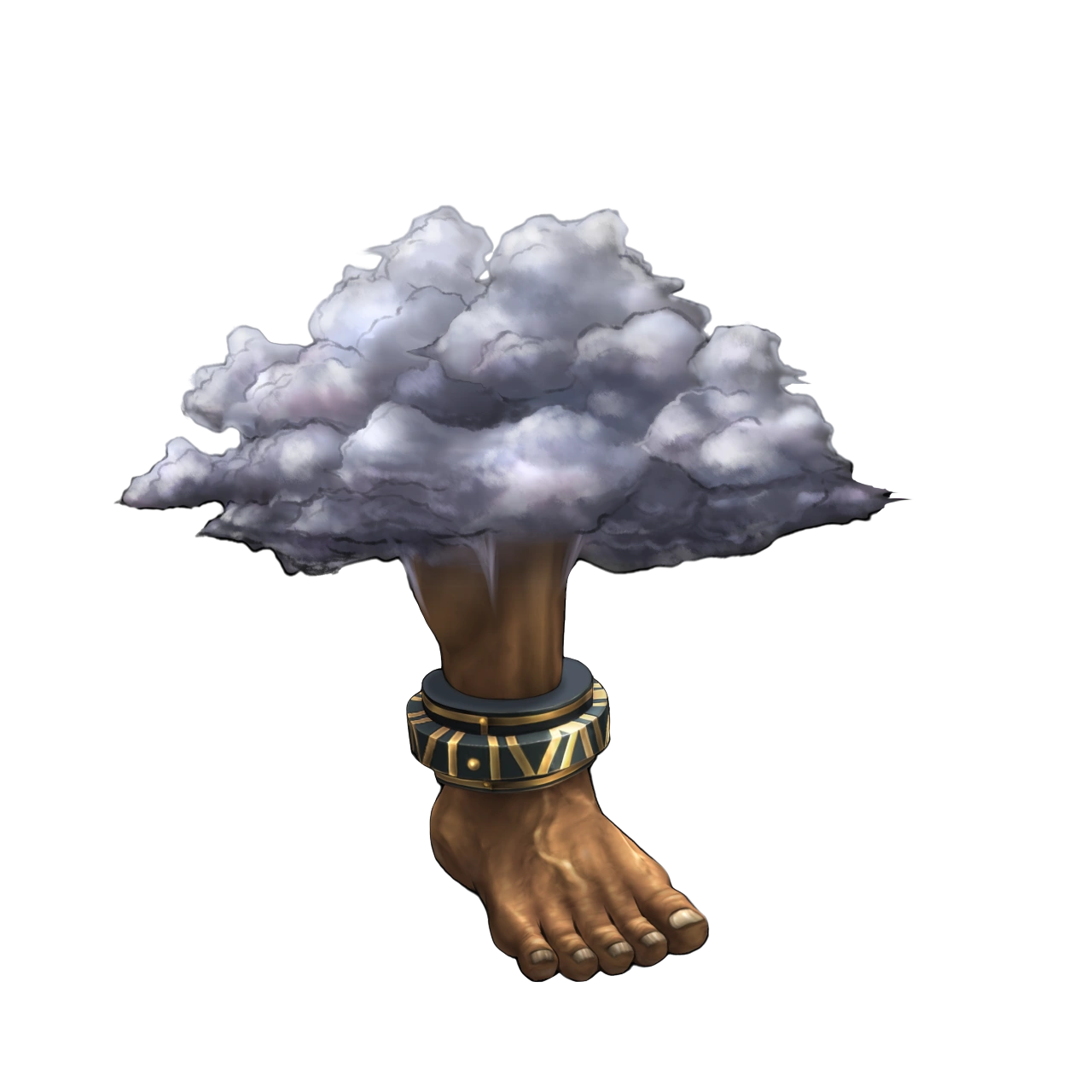 When used, this item summons a mass of clouds. A giant foot comes stomping down soon after and damages any enemies underneath it.