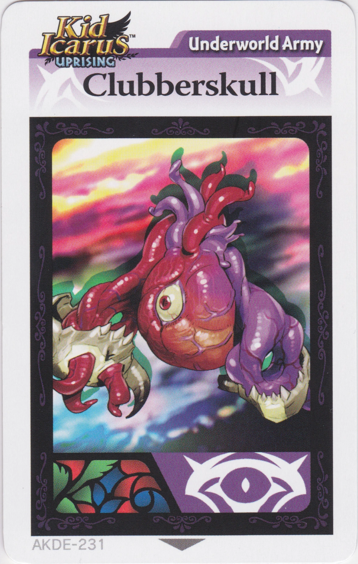 Clubberskull is an AR Card that was available in the first series of Kid Icarus: Uprising Booster Packs. By scanning the card to a copy of Uprising, the player will receive an Idol of a Clubberskull, as well as 100 Hearts.