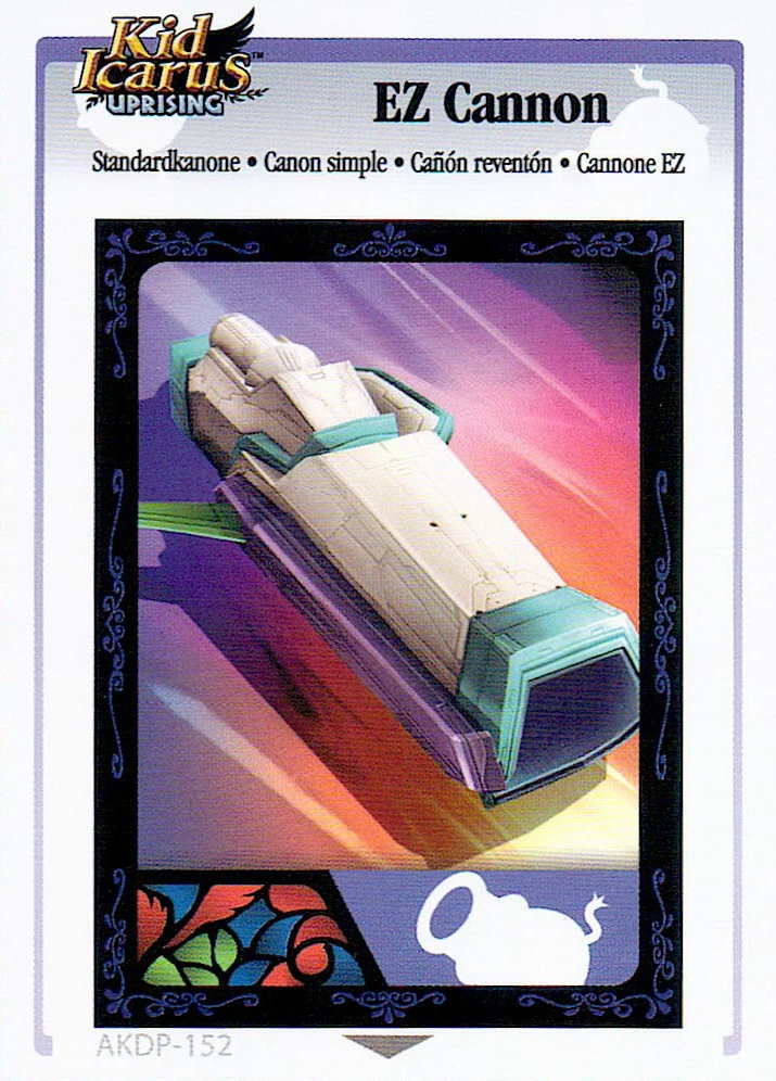 EZ Cannon is an AR Card that was available with copies of Kid Icarus: Uprising. By scanning the card to a copy of Uprising, the player will receive an Idol of the EZ Cannon, as well as 100 Hearts.