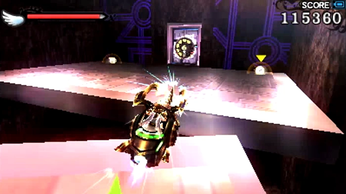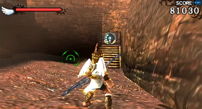 This gate is found on the left wall near the beginning of the Exo Tank track. The gate takes Pit through a series of platforms, which he must jump on, fighting off enemies as he makes his way towards a Treasure Box. There is also a Souflee that appears along the path. The pathway drops Pit off at the end of the first Exo Tank track.