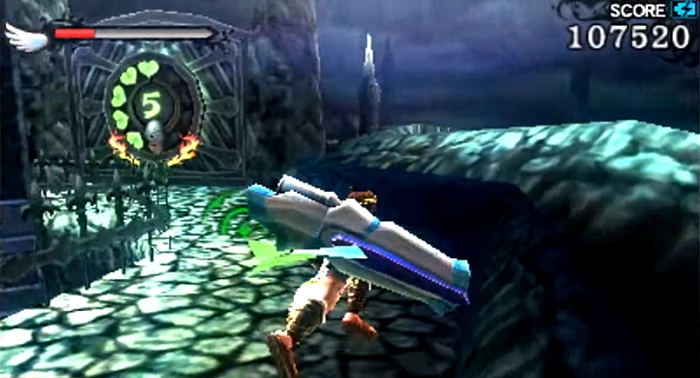 Near the start of the land battle, this gate can be found in the area with two Commylooses at the top of a small staircase. It will take Pit down a pathway, but players shouldn't drop off at the end, which will take them back to the starting point—instead, they should take a sharp right to find a Treasure Box. Turning around and going back the way they came also reveals a Souflee.