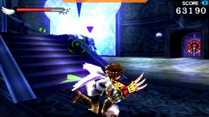 After Pit falls through the trap door leading back to the central area, the player can find the Intensity Gate by heading into the next room and turning right. The room behind this gate contains a Treasure Box, as well as a Bumbledrop and two Frozum.