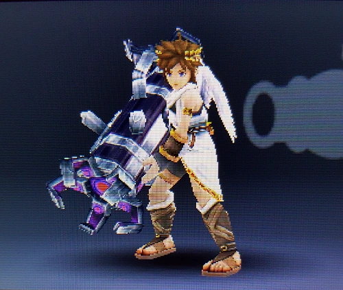 After Hades's ultimate destruction, Pit's exclamation of "Victory!" isn't inspired by the thrill of defeating his nemesis or the gratitude he feels for Palutena. Rather, it is a spontaneous expression of joy and relief. | Only obtainable through scanning digital image. | |