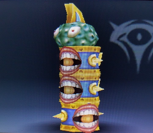 An Aurum copy of the Underworld's Specknose. Those Aurum eyes are super creepy, huh? Although Aurum versions of Monoeye, Specknose, and Mik exist, they thankfully don't combine to form an Aurum Monomiknose. | Idol Toss, Idol Transformation, AR Card | |