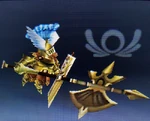 The Great Sacred Treasure was designed by Dyntos to be the ultimate weapon. Used in the final battle against Hades, the weapon is huge and incredibly powerful, yet can stop on a dime and change its form to adapt to damage. | Idol Toss, AR Card | |