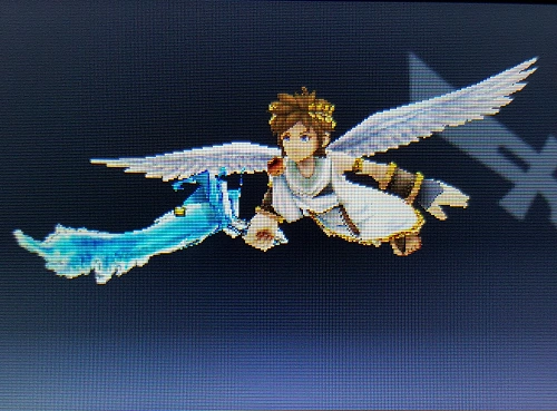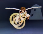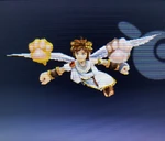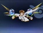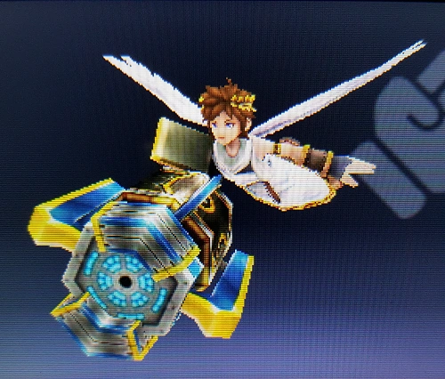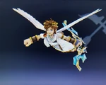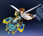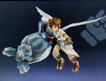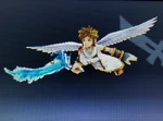 Palutena's divine power keeping Pit aloft during his air battles. Because Pit can't actually fly, Palutena controls the flight path and destination, ensuring he lands before the power's roughly five-minute time limit expires and Pit falls. | Idol Toss, AR Card | |
