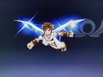 The Chaos Kin takes advantage of Pit's weakened state after his battle with the Aurum to seal his soul in a ring. Without a spirit to guide it, Pit's body is at the whim of the Chaos Kin, mindlessly rampaging for three years. | Idol Toss, AR Card | |
