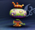 This bomb contains the essence of the Eggplant Wizard's dark magic. Victims of this item are temporarily transformed into eggplants. Once requiring a visit to the hospital to cure, this condition thankfully now wears off over time. | Idol Toss, AR Card | |