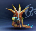 An Aurum copy of the Underworld's Skuttler. Even the weakness and clumsy movements of the original have been faithfully reproduced! When assimilating a new world, the Aurum copy all fighting styles...even the weak ones. | Idol Toss, Idol Transformation, AR Card | |