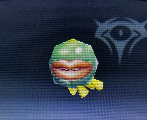 NTSC: The Rare Treasurefish is loaded with even better cargo than its cousins! You can be sure whatever they're carrying is top notch, so shoot them down on sight. They seem to insist on standing out without any regard for their own safety. PAL: Rare Treasurefish are loaded with even better cargo than their cousins! You can be sure whatever they're carrying is top notch, so shoot them down on sight. They seem to insist on standing out without any regard for their own safety. |