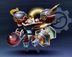 While it may look cool, the overwhelming destructive might in this combat armor of the gods is best left to seasoned warriors. Cherubot's compact form factor and self-propulsion make it easy to deploy into battle, if at limited mobility. | Idol Toss, AR Card |