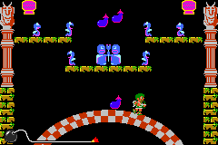 Pit is among the Nintendo characters to make a cameo appearance in the results screen. Pit in particular can be seen when the player has completed height 0 of Game B's ninth level. Pit is seen playing the harp in a band consisting of himself, Donkey Kong, Link, Samus Aran, Mario, Luigi, Princess Toadstool, and Bowser. Pit's instrument could be a pun on his choice of weapon, as the tool used for playing a stringed instrument is also called a bow.