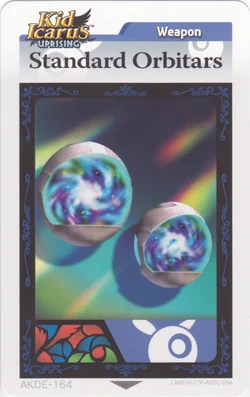 Standard Orbitars is an AR Card that was available with copies of Kid Icarus: Uprising. By scanning the card to a copy of Uprising, the player will receive an Idol of the Standard Orbitars, as well as 100 Hearts.