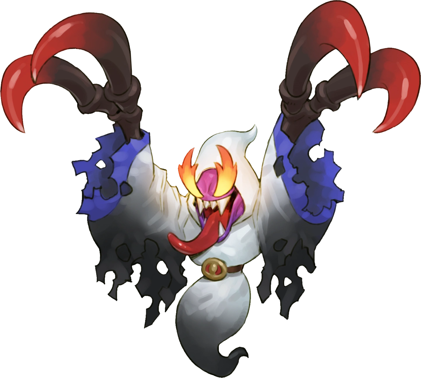 In Uprising, it now wears a tattered, white cloak with blue trimming. When active, it has fiery orange eyes, a pink face, and a gaping mouth with sharp teeth and a long tongue. It possesses two skeletal arms, and massive claws with red tips.