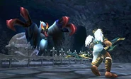The Zuree lies in wait, disguised as a cloud of blue mist. It is invincible in this form. It reveals itself right before letting out a blood curdling shriek and slashing at its opponents, which inflicts them with the shaking debuff. A Zuree can be attacked when it returns to its true form.